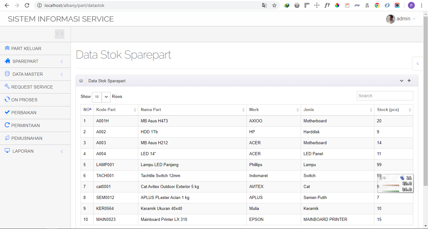 Sebuah aplikasi untuk pendataan perbaikan sparepart beserta cetak laporan perbulan
