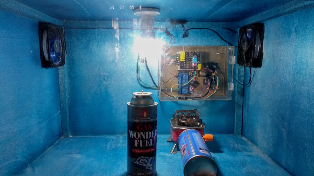 apabila tedeteksi GAS oleh sensor MQ-2, maka grafik akan meningkat naik, apabila diatas tingkat aman 120ppm maka buzzer akan aktif mengeluarkan bunyi peringatan, kemudian beberapa detik setelahnya lampu akan mati dengan otomatis , diaplikasi android akan menerima notifikasi bahwa telah terjadi kebocoran gas, apa bila melebihi batas aman maka kipas akan menyala dengan otomatis berfungsi sebagai Exaustfan untuk mengeluarkan gas dari dalam ruangan. bila gas yang ada didalam ruangan telah habis maka buzzer akan berhenti berbunyi dan lampu akan menyala beberapa detik setelahnya, dan terakhir kipas akan mati dengan sendirinya.